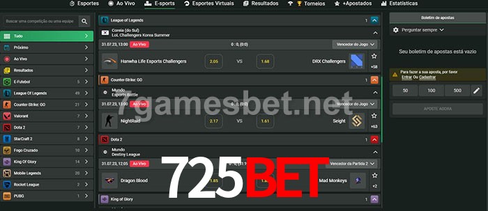 O 725Bet oferece uma grande seleção de opções de apostas em e-sports com probabilidades competitivas